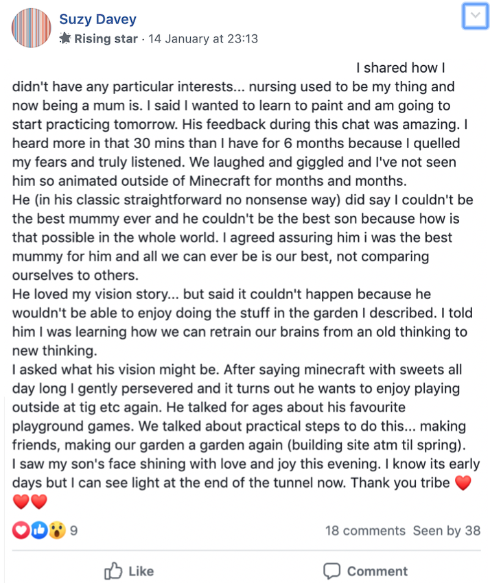 She took action on my answer and had the best conversation with her 9 year old neurodiverse son she'd had in 6 months.